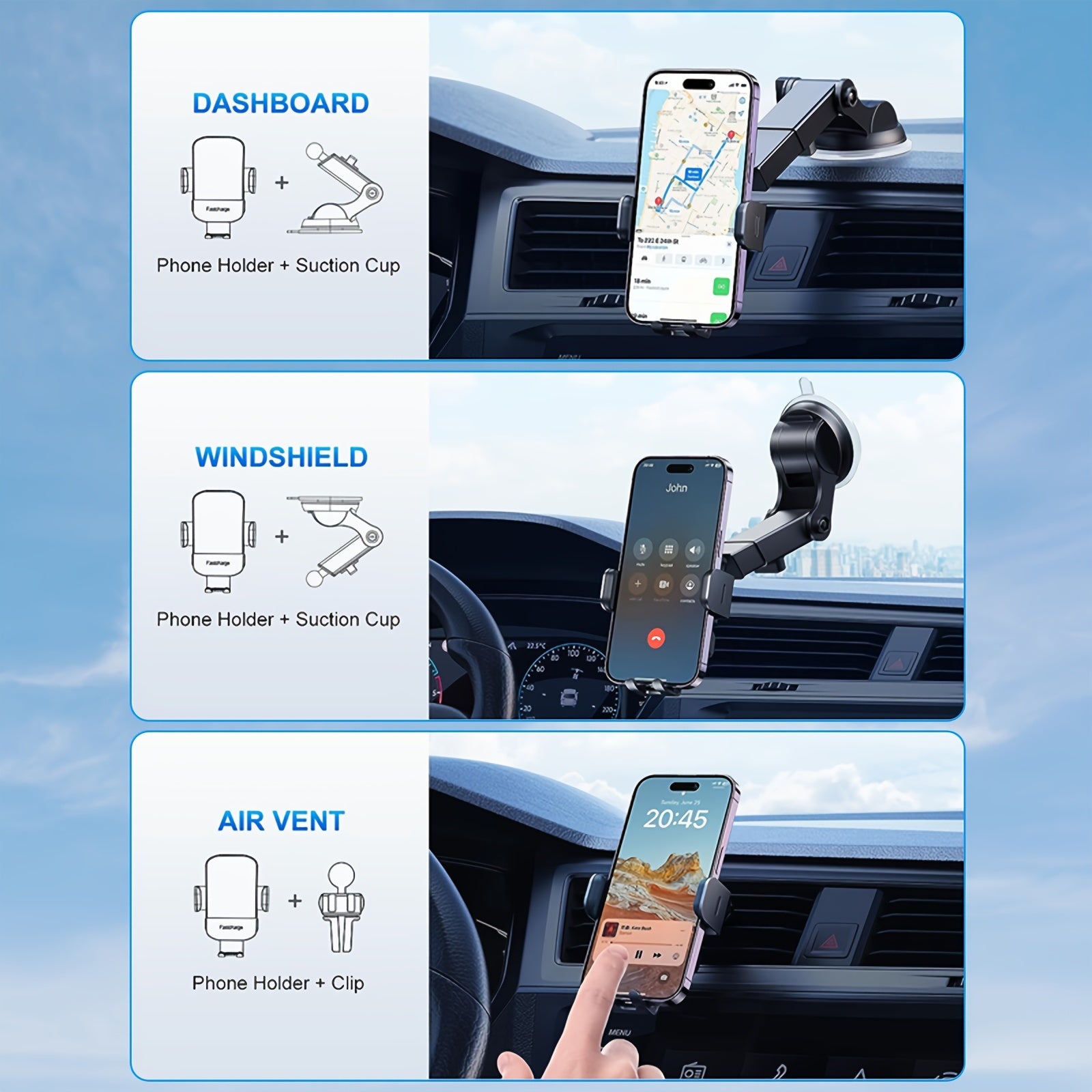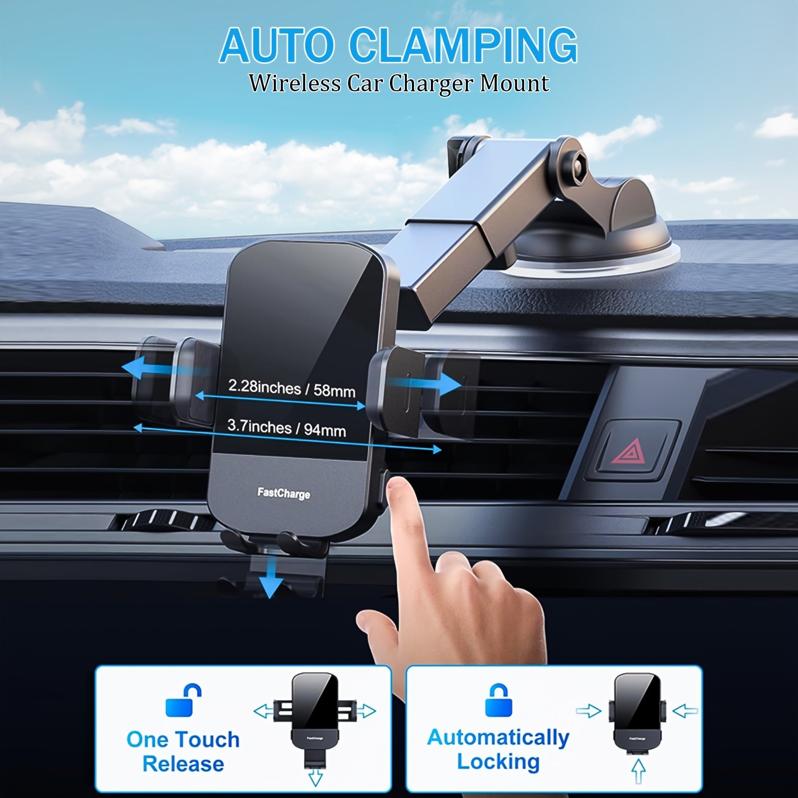 15W Rapid Wireless Car Charger, Automatic Clamping, Adjustable Phone Holder for Hands-Free Driving - Universal Compatibility with iPhone 15, 14, 13, 12, 11 Pro Max, Xs, Galaxy S24 Ultra, S23, S22, S21, S20, S10+