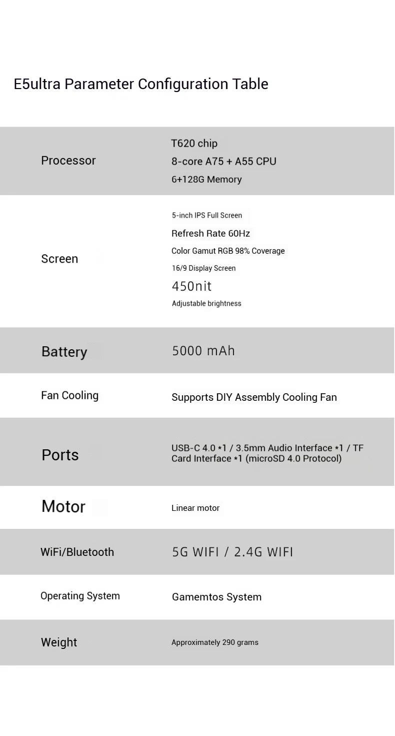 2025 NUEVA consola de juegos GAMEMT E5 Ultra portátil Joystick de efecto Hall 60Hz Pantalla táctil IPS 5000mAh Consolas Android portátiles