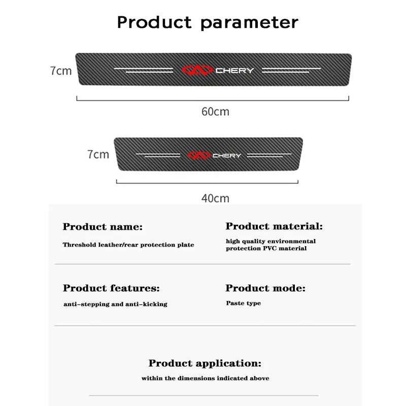 4 Uds pegatina decorativa de protección de umbral de coche para Chery Tiggo 2 3 4 7 8 Pro QQ Iq Fulwin Blossom Fulwin Arrizo