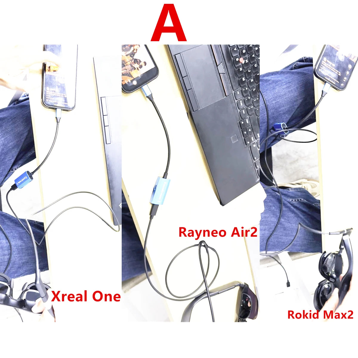 AR Glasses Hub sin costuras multidispositivo tipo C adaptador de carga compatible con HDMI para Xreal Beam Viture Rokid Station Rayneo XR USB-C