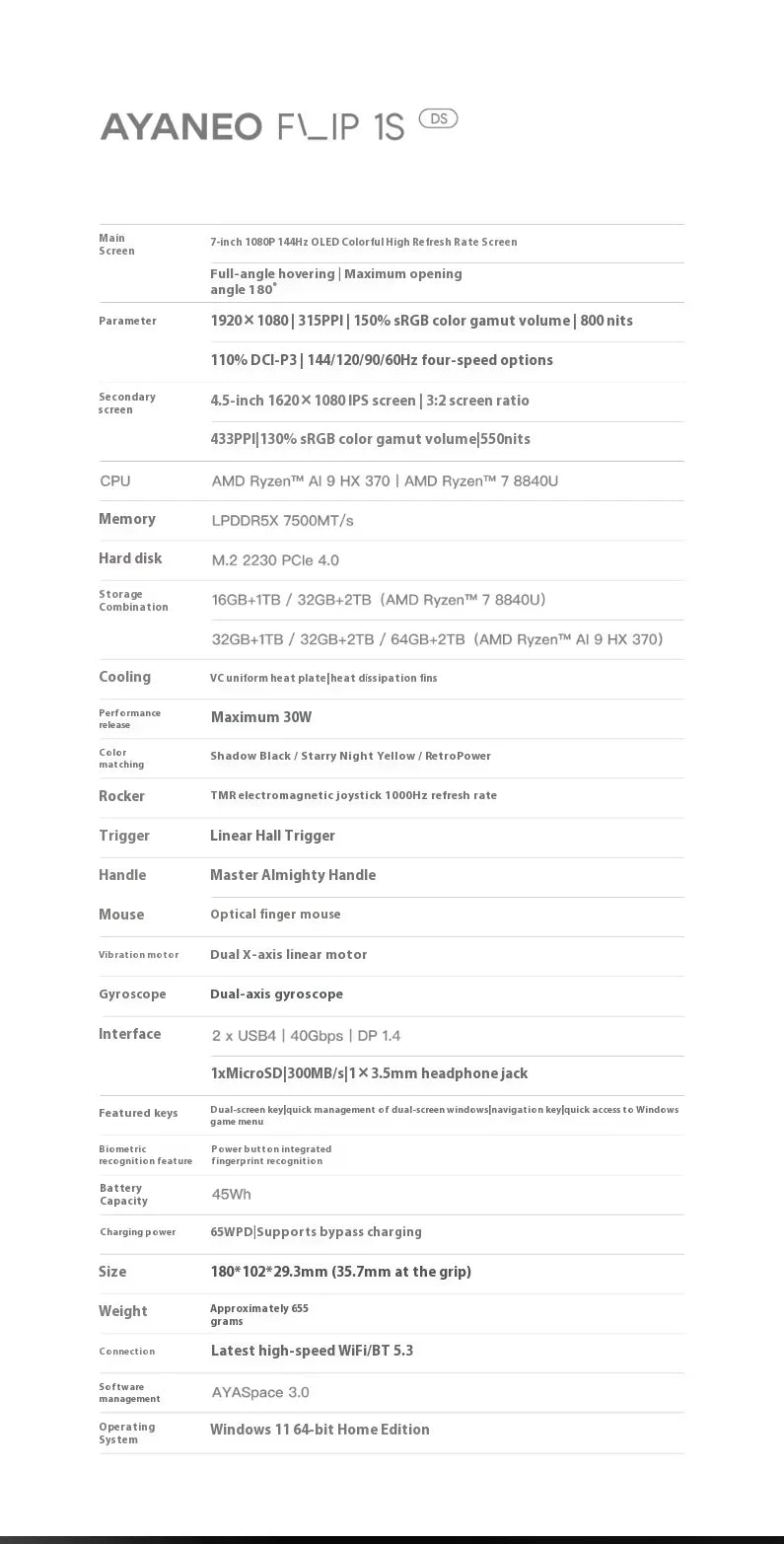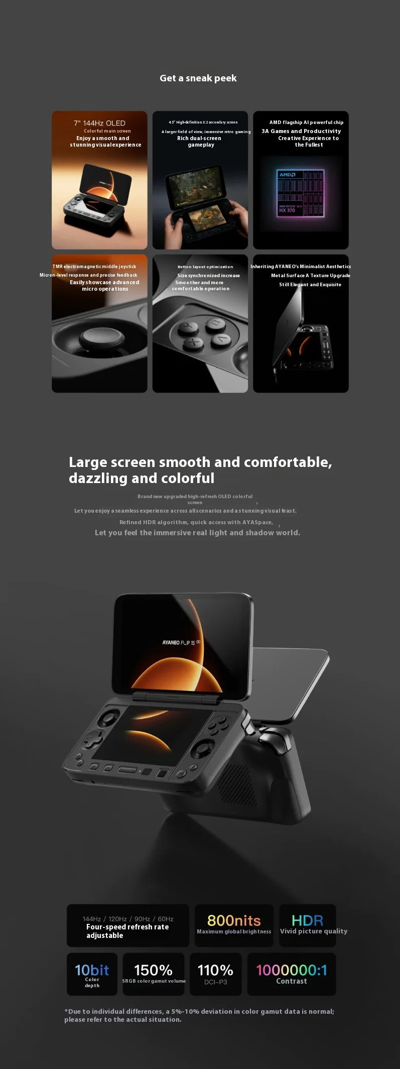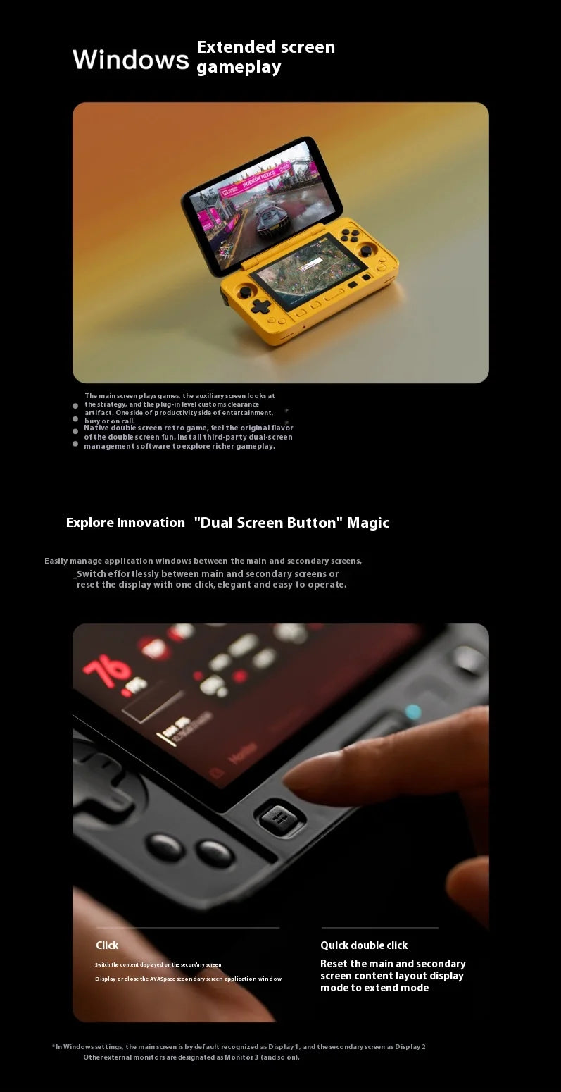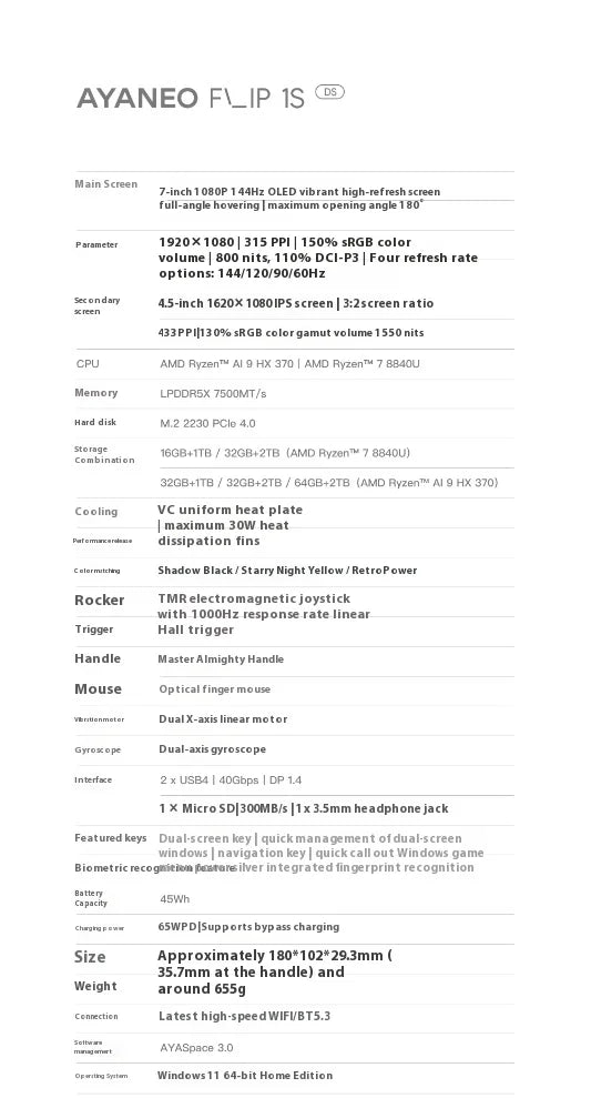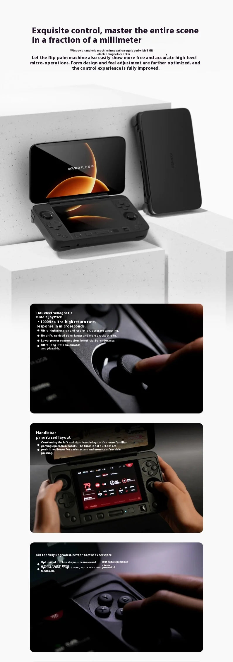 AYANEO Flip 1S DS Flip consola de juegos 7 "1080P 144Hz pantalla OLED consola portátil HX370 8840U máquina de juegos de pantallas duales