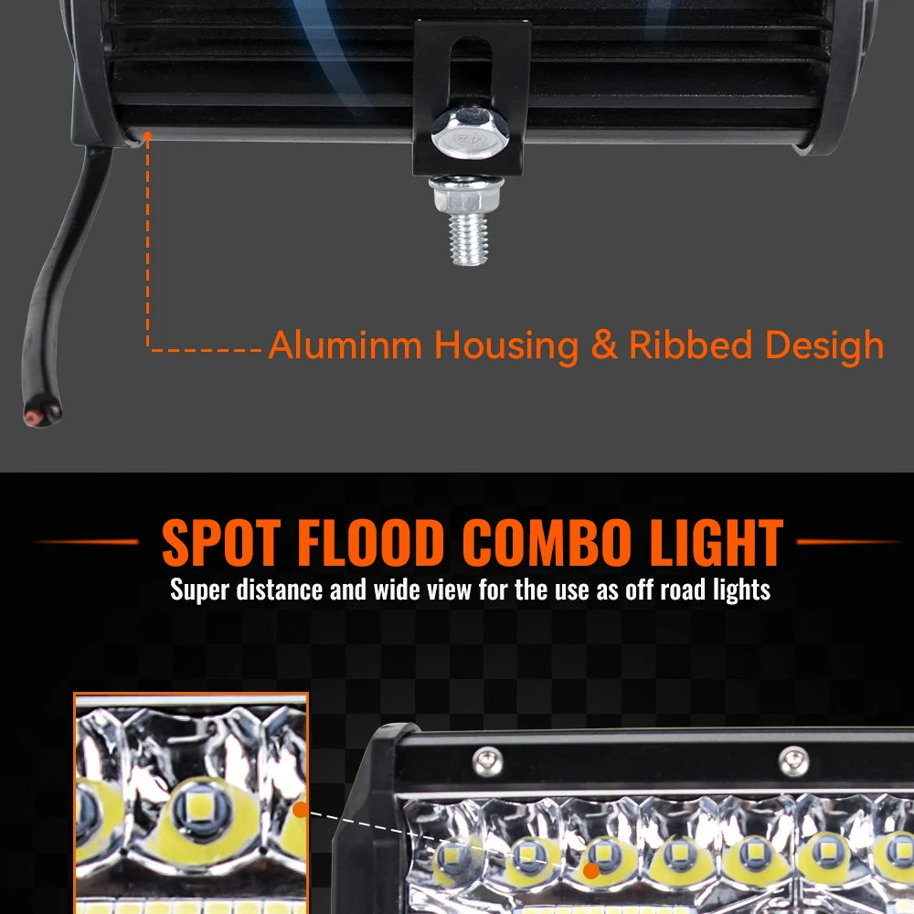 Barras de luz Led todoterreno combinadas de 4/ 7 pulgadas y 120W, haz de inundación para trabajo, conducción, barco todoterreno, coche, Tractor, camión, 4x4, SUV, ATV, 12V, 24V
