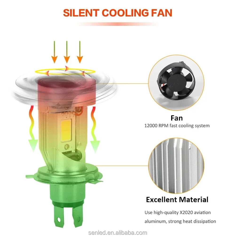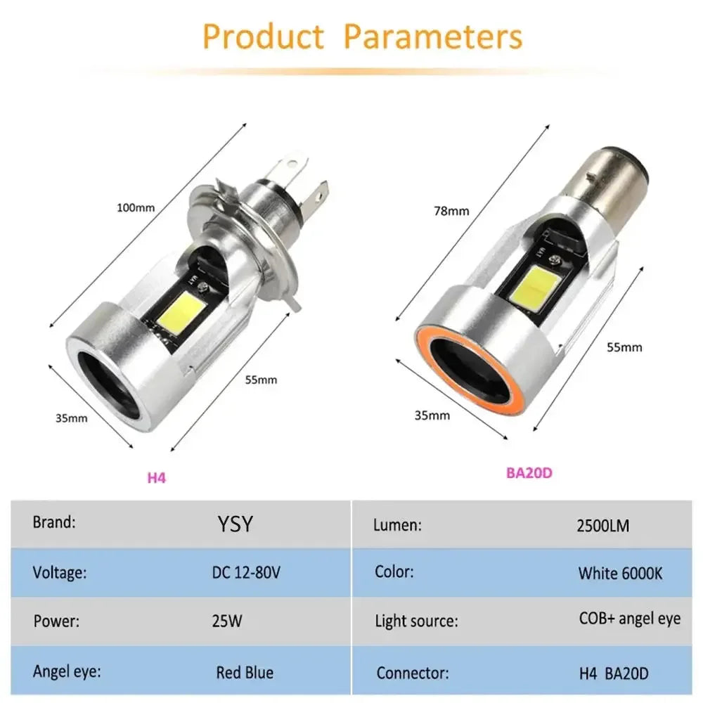 Bombilla con ventiladores H4 BA20D azul/rojo Ojo de Ángel LED faro de motocicleta Scooter faro de motocicleta bombilla DRL Accesorios
