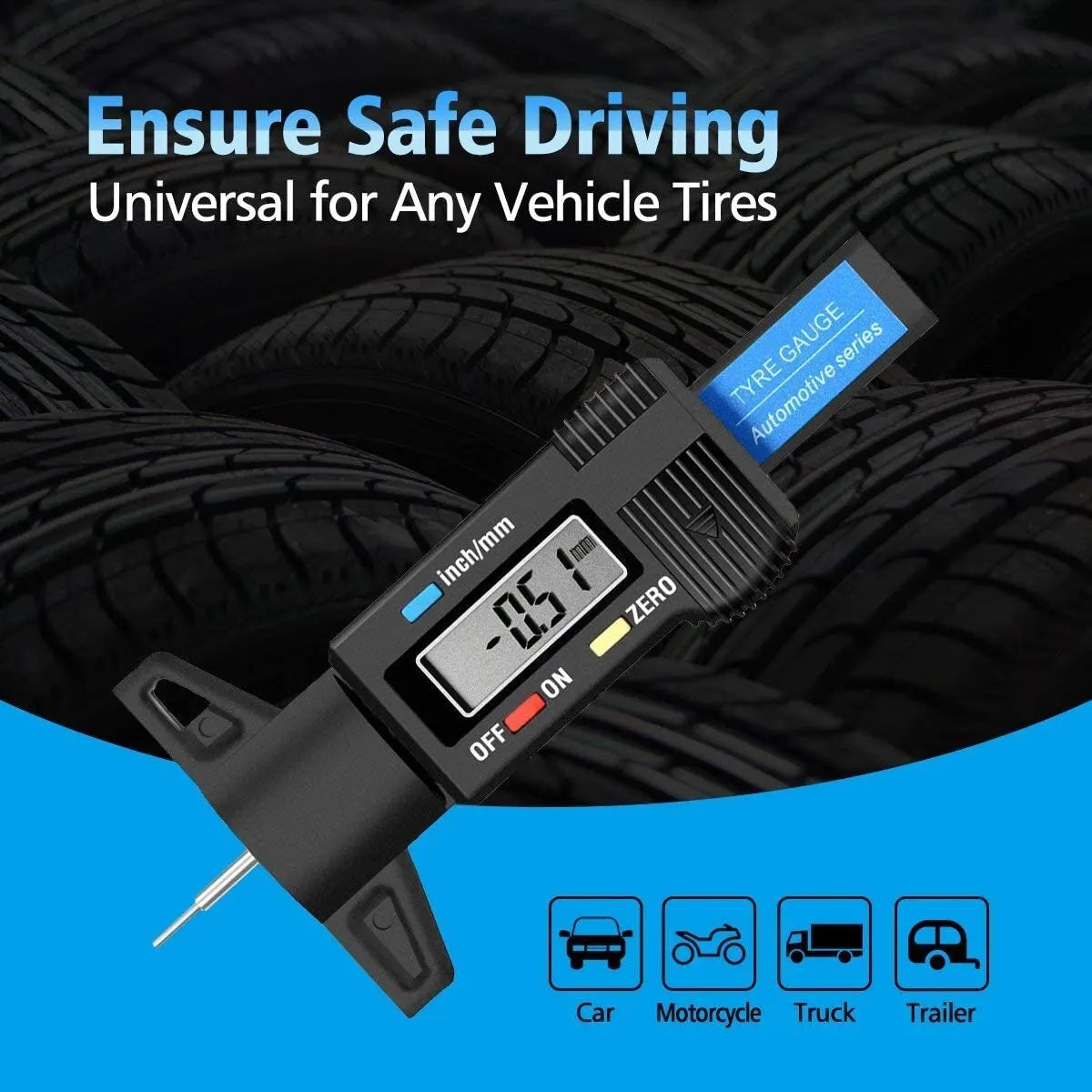 Calibrador de profundidad Digital, medidor de profundidad de la banda de rodadura, LCD, medidor de banda de rodadura de neumáticos para neumáticos de coche, herramienta de medición de 0-25mm, herramientas de reparación de