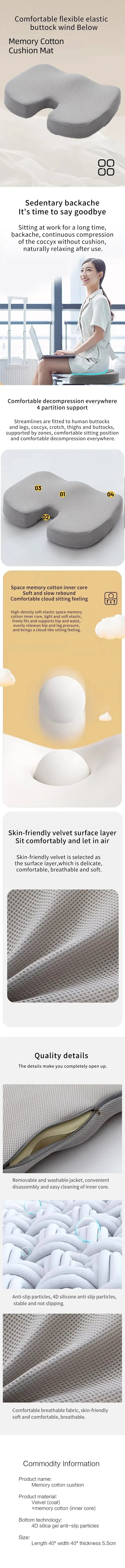 Cojín para asiento de coche, cojín de espuma viscoelástica para oficina, cojín Coccyx ergonómico, soporte de oficina, cojín sedentario, cojín para trasero de estudiante