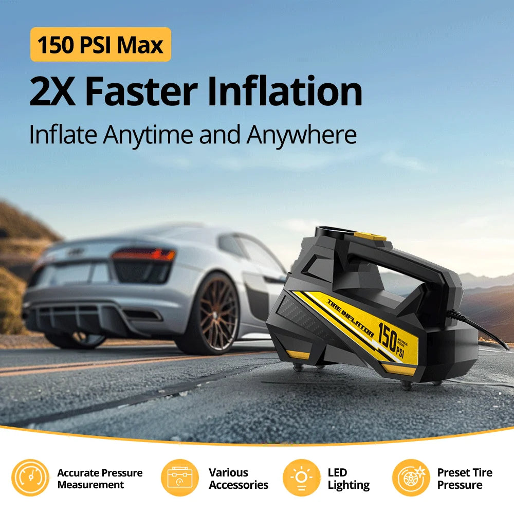 Compresor de aire portátil para coche, inflador de neumáticos con cable Digital, bomba de aire de neumáticos con luz LED de emergencia para coche, motocicleta, bicicleta