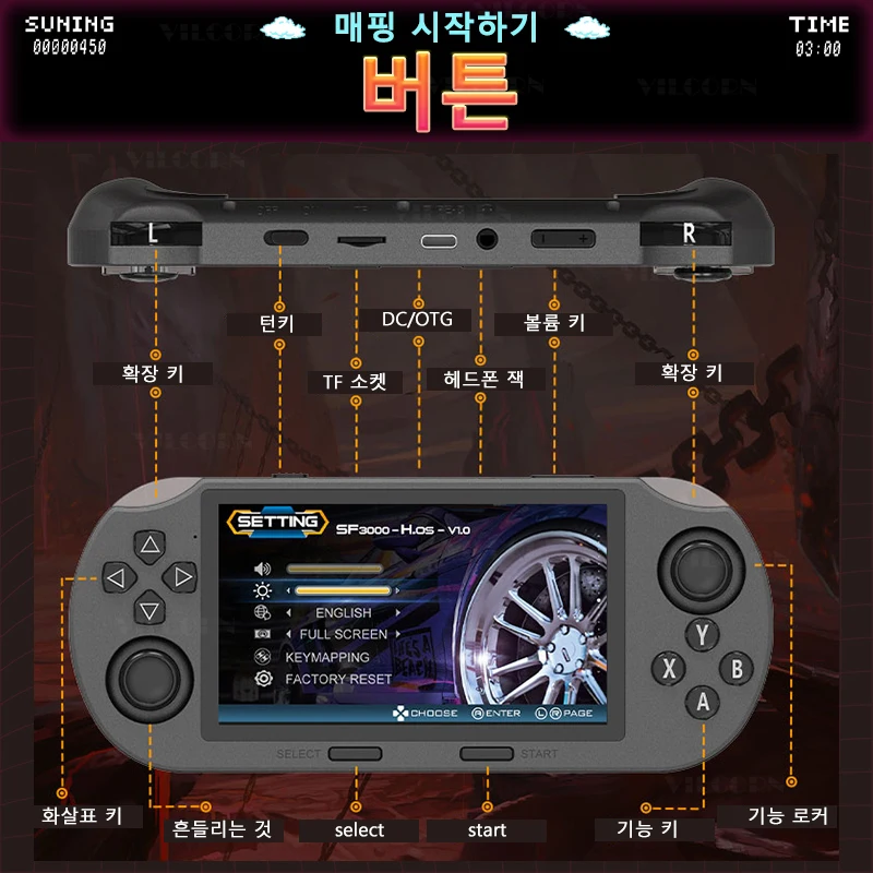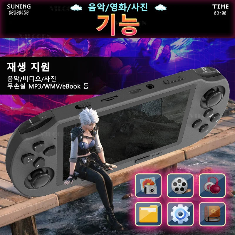 ¿Qué nos diferencia?La configuración y los juegos del mercado se muestran en su mayoría en inglés.Sin embargo, nuestra consola portátil ofrece una exhibición coreana completa.Más del 95% de los juegos se presentan en coreano y algunos están en inglés.No hay dificultad para leer.Es fácil de operar.Además, incorporamos más de 11000 juegos.Los juegos clásicos no son repetitivos.Sumérgete en un mundo de excelencia en los juegos como nunca antes.