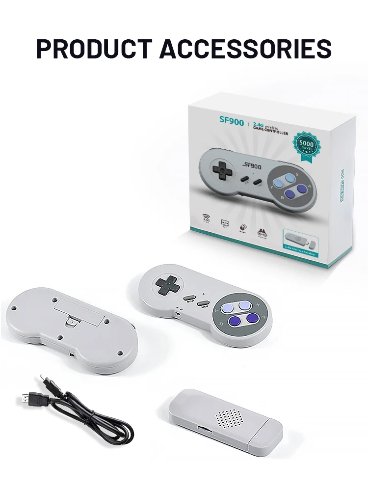 Consola de juegos SF900 HD Video Game Stick con más de 4900 juegos retro para controlador inalámbrico SNES