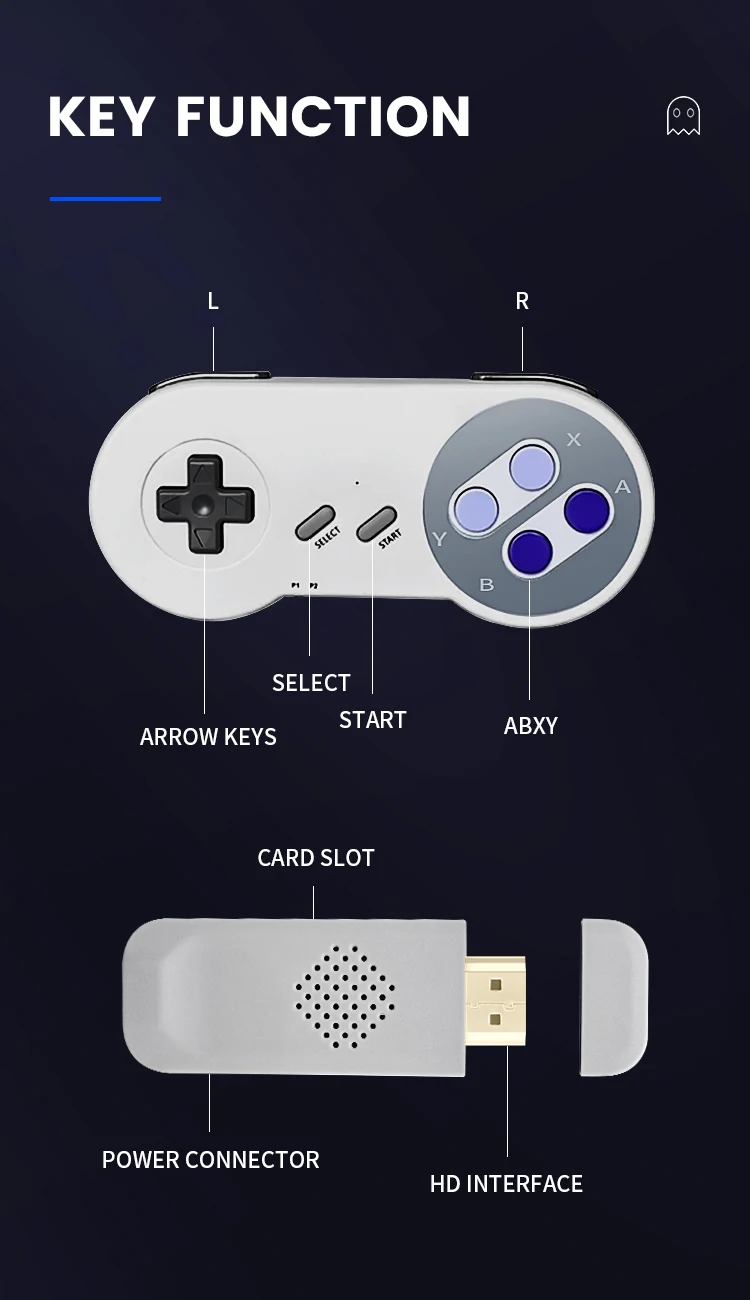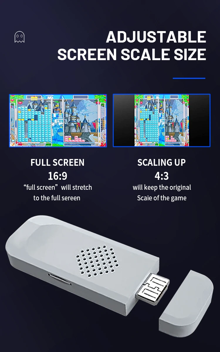 Instalación: Conecte el dispositivo de juego al puerto HD del televisor, conecte el cable USB a la consola de juegos para obtener energía, seleccione la entrada HD en el televisor que mostrará la imagen en el televisor.Después de eso, juega juegos retro gratuitos.
