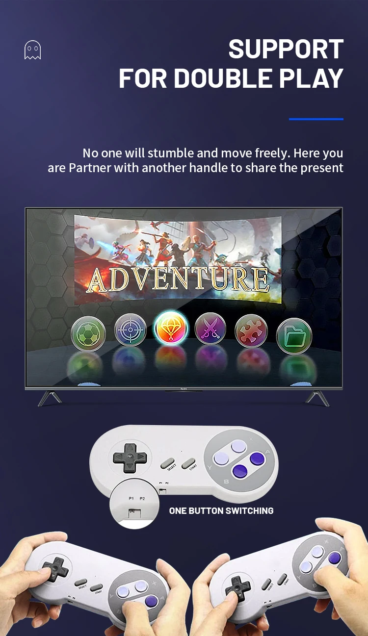 Consola de videojuegos retro clásica: la mini consola de juegos retro clásica es una consola de juegos de TV muy popular en la década de 1980.Tiene juegos infantiles clásicos integrados, que incluyen docenas de los videojuegos más clásicos, como acción, deportes y rompecabezas, están integrados en el juego retro.
