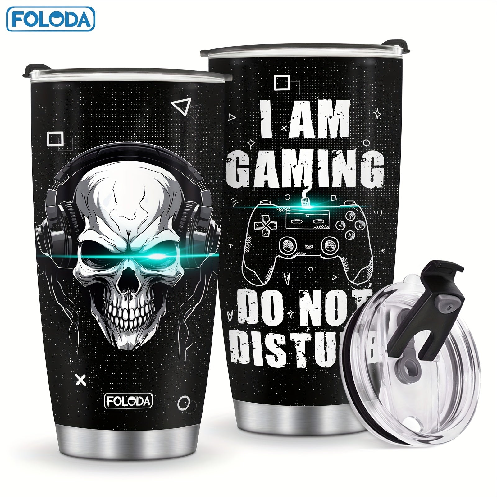 Foloda 1pc Skull Gamepad Gamer Gifts, Gaming Gifts, Gamer Gift Ideas, Christmas Birthday Gifts for Gamers, Cool Gamer Gifts for Men Teen Boys Girls Boyfriend, Game Cups, Gifts for Game Lovers Stainless Steel Tumbler with Lid