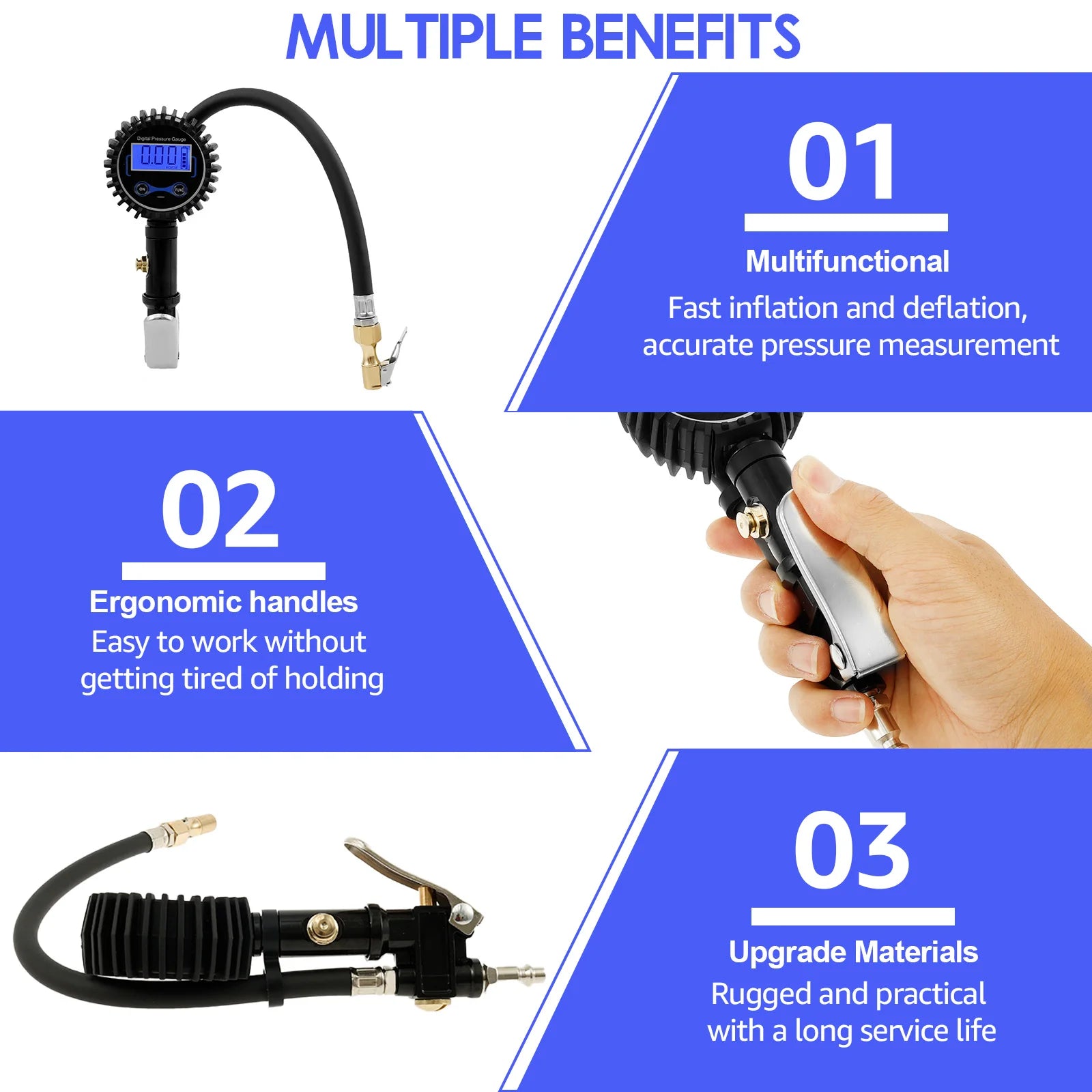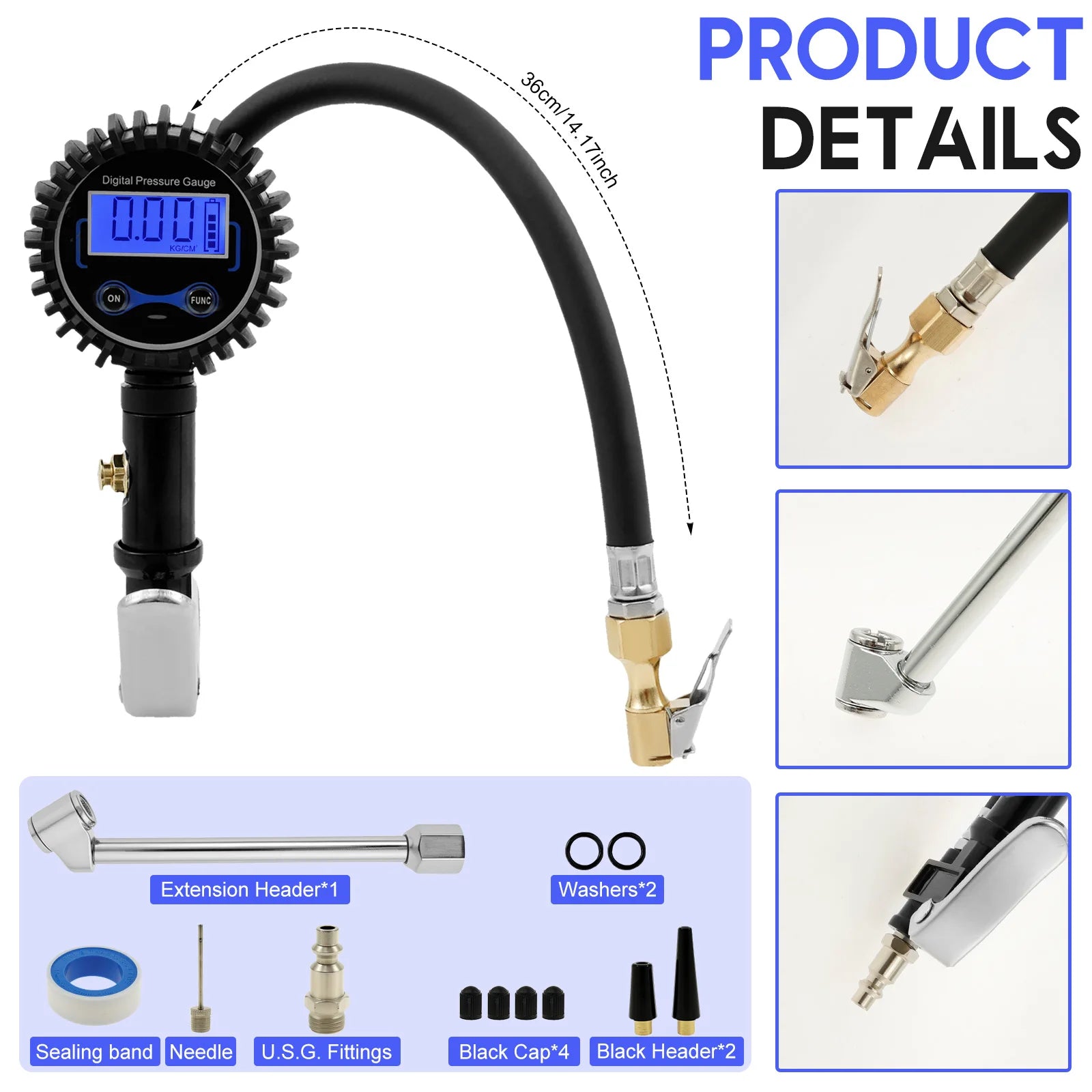 Inflador de neumáticos Digital, medidor de presión de neumáticos, pantalla LCD versátil, inflador de neumáticos con función de retroiluminación para coche, camión, motocicleta