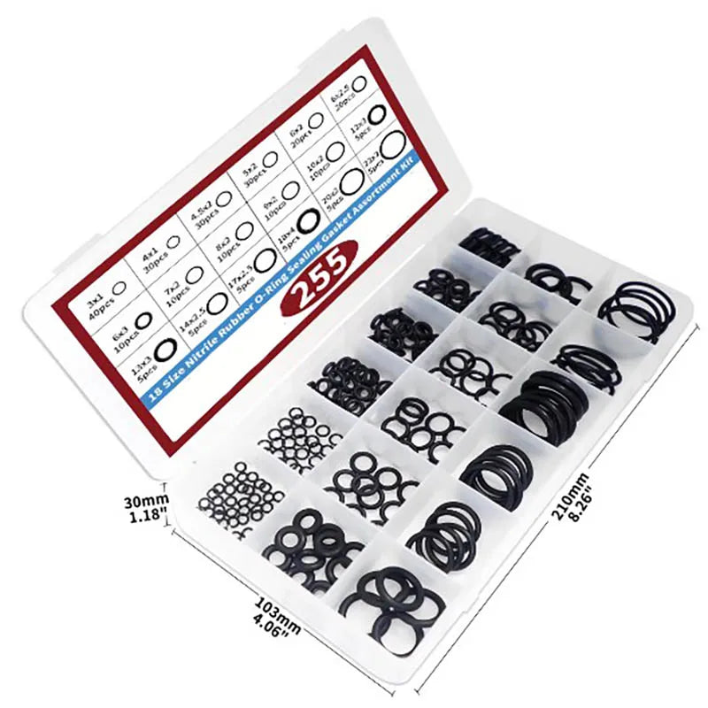 Kit de juntas tóricas de goma de 255 piezas, kit surtido de sellado de juntas de arandela NBR métrica de 18 tamaños, para grifo de plomería, automóvil, aire o gas