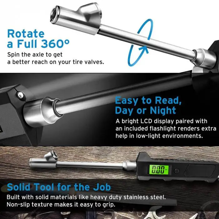 Manómetro digital de neumáticos 230 PSI 4 configuraciones resistente antideslizante con linterna LCD retroiluminada para camión/coche/bicicleta/motocicletas