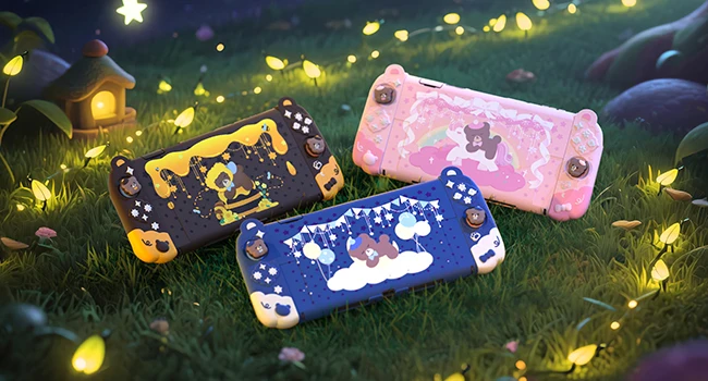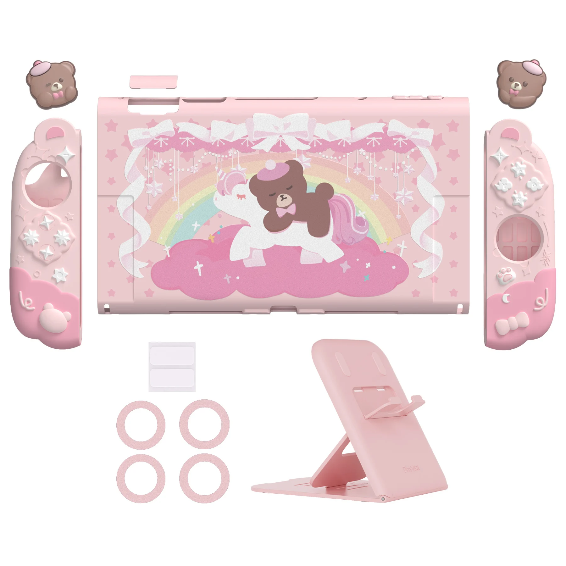 Los agarres ergonómicos Joycon con lindos detalles de orejas de oso y botones de estrella en la nube ofrecen una sujeción cómoda y natural para largas sesiones de juego.