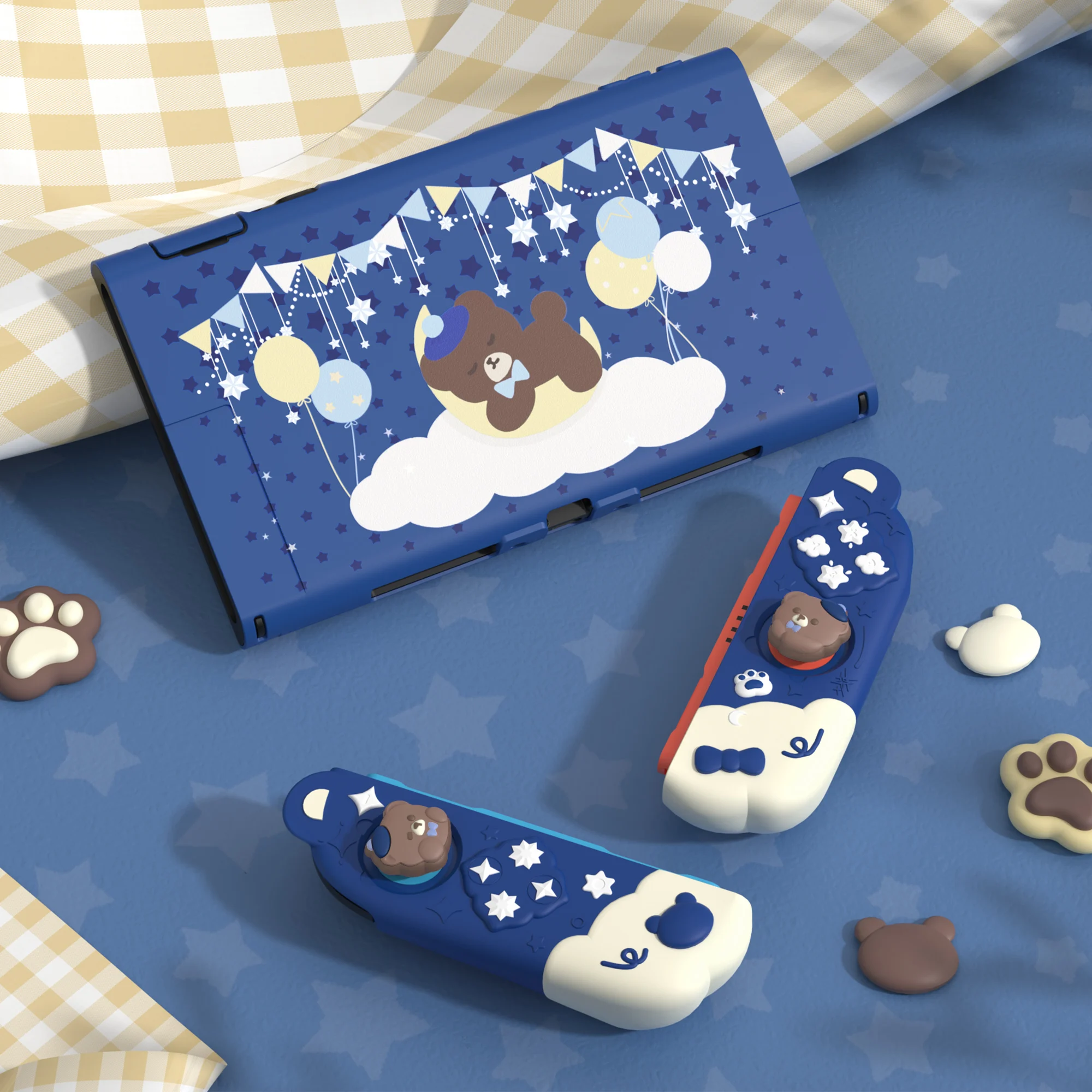 PlayVital Funda protectora acoplable para Switch 2 – Funda de silicona Good Night Bear con empuñaduras Joycon desmontables y lindas tapas para el pulgar
