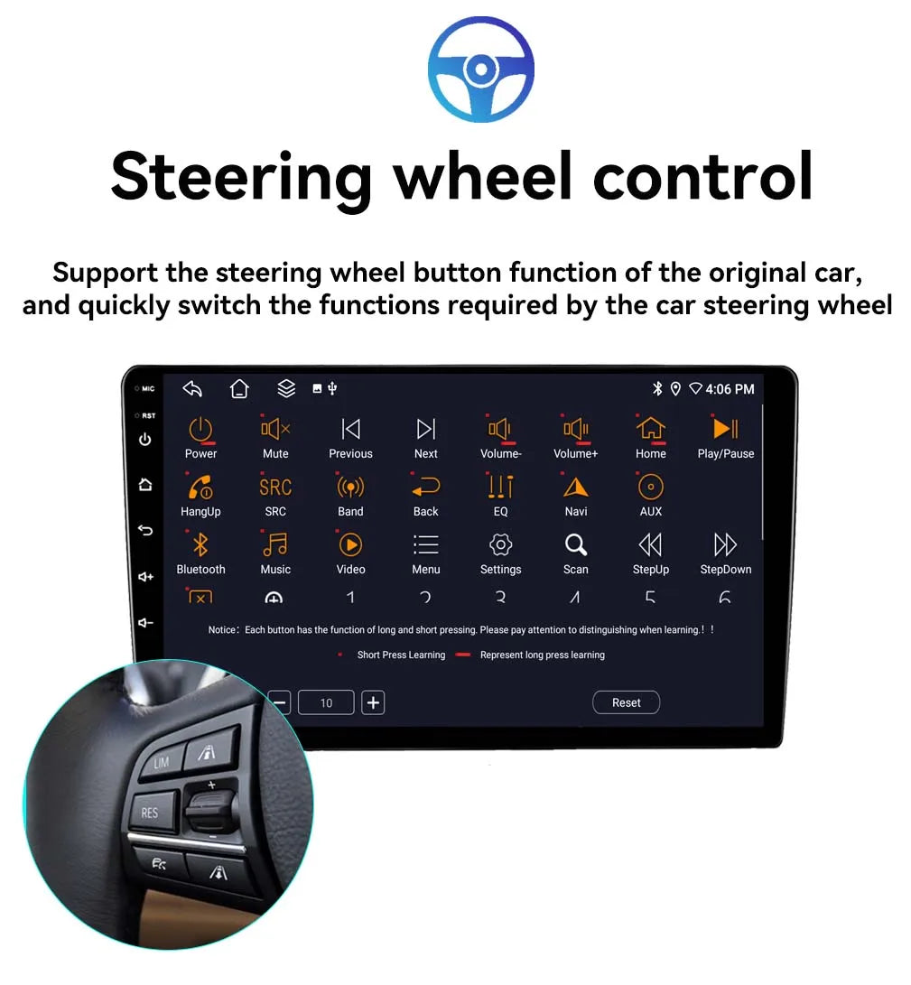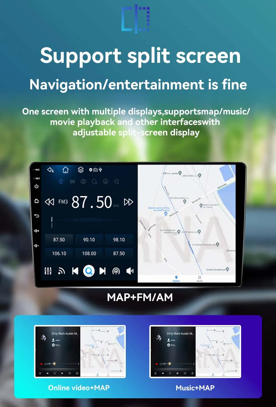 Prestaciones: Altavoz/micrófono incorporado,función wifi,soporte de control del volante,Soporte 4G Red,Soporte de Can-Bus,GPS incorporado,Teléfono móvil,Reproductores de MP3,Control de voz,DSP,Carplay,Android automático,Entrada de marcha atrás,Pantalla dividida