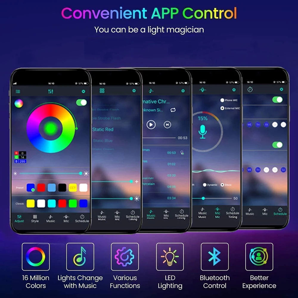 Tira de luces LED de 10m, 20m, 30m, sincronización de música, cinta de luces Led RGB para habitación, decoración de fiesta en casa, retroiluminación de TV, cinta Felxible