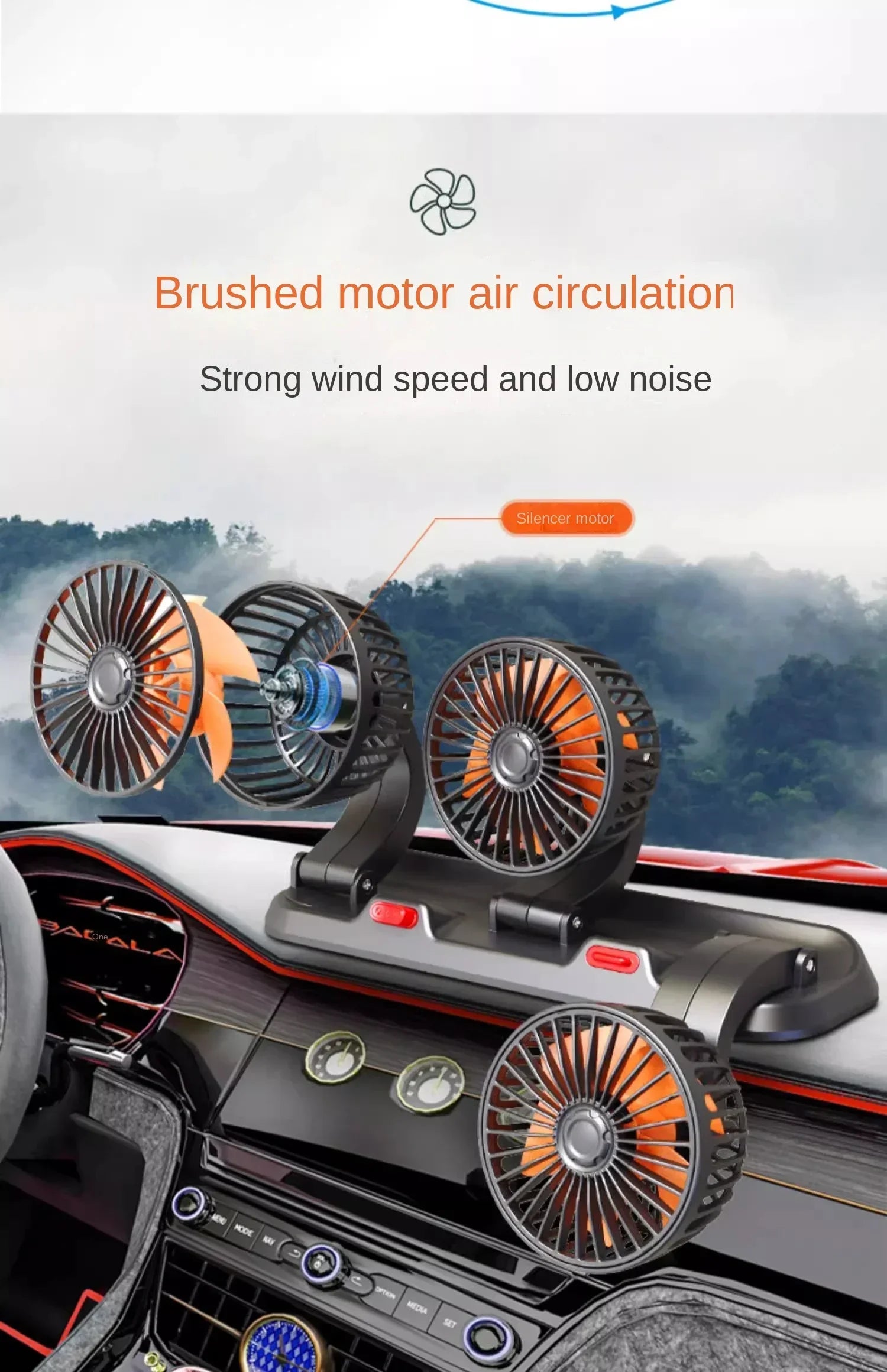 Ventilador automotriz del coche del ventilador 12v 24v 360 ° Ventilador de aire ajustable de 3 cabezales, tarjeta de estacionamiento temporal multifuncional de poco ruido, ventilador para vehículos