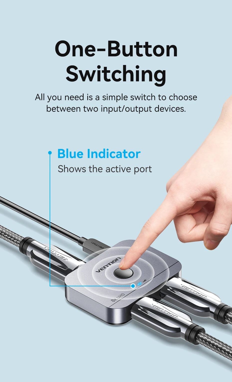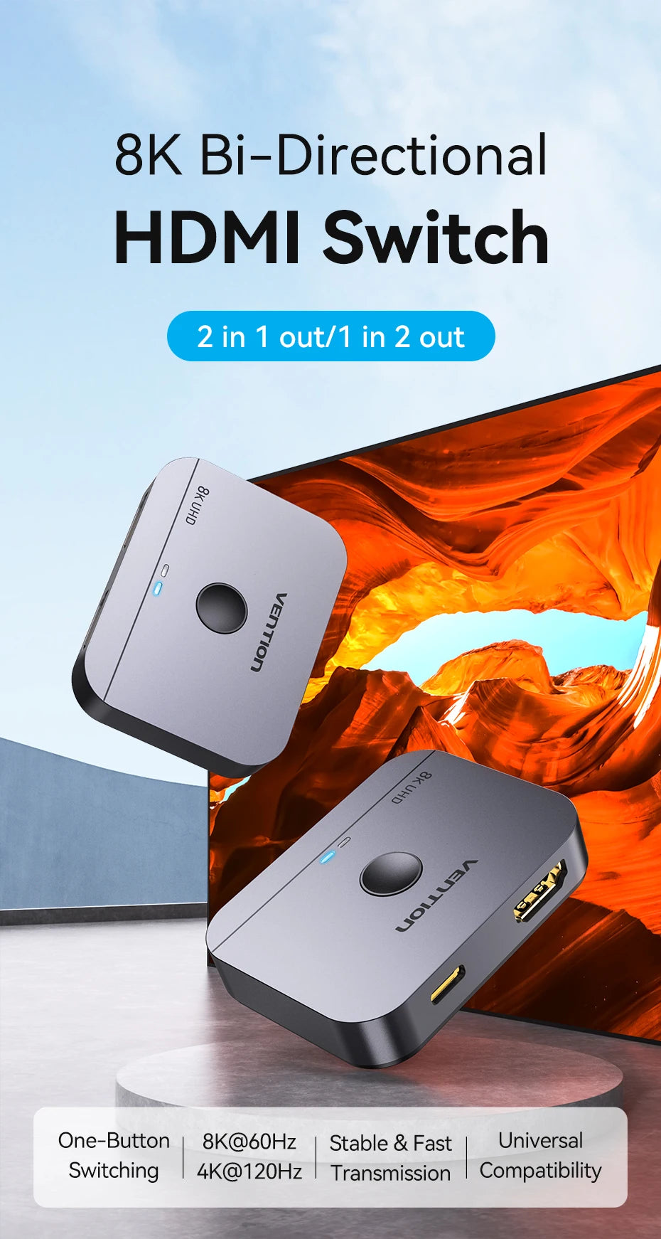 Vention HDMI 2,1 divisor 8K 60Hz 4K120Hz bidireccional 2 en 1 salida para TV Xiaomi Xbox PS4 5 Monitor compatible con HDMI conmutador HDMI