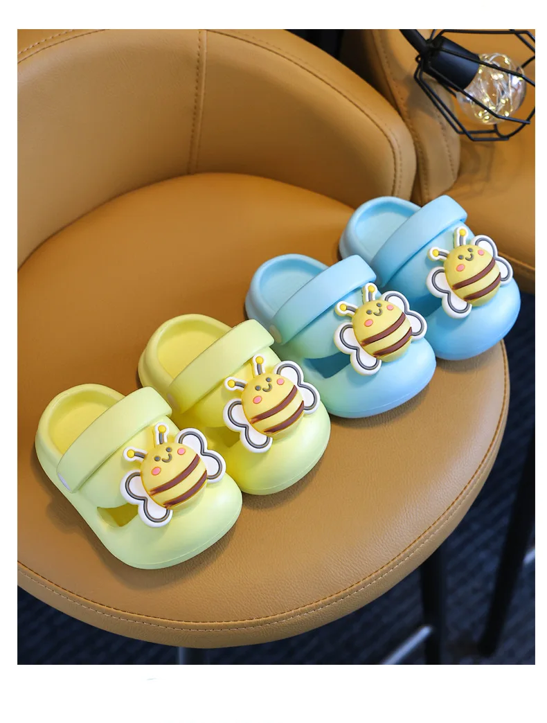 Zapatillas para niños y niñas con suela de EVA de dibujos animados, zapatos bonitos de abeja grande para el hogar, suelas suaves para interiores de verano, novedad