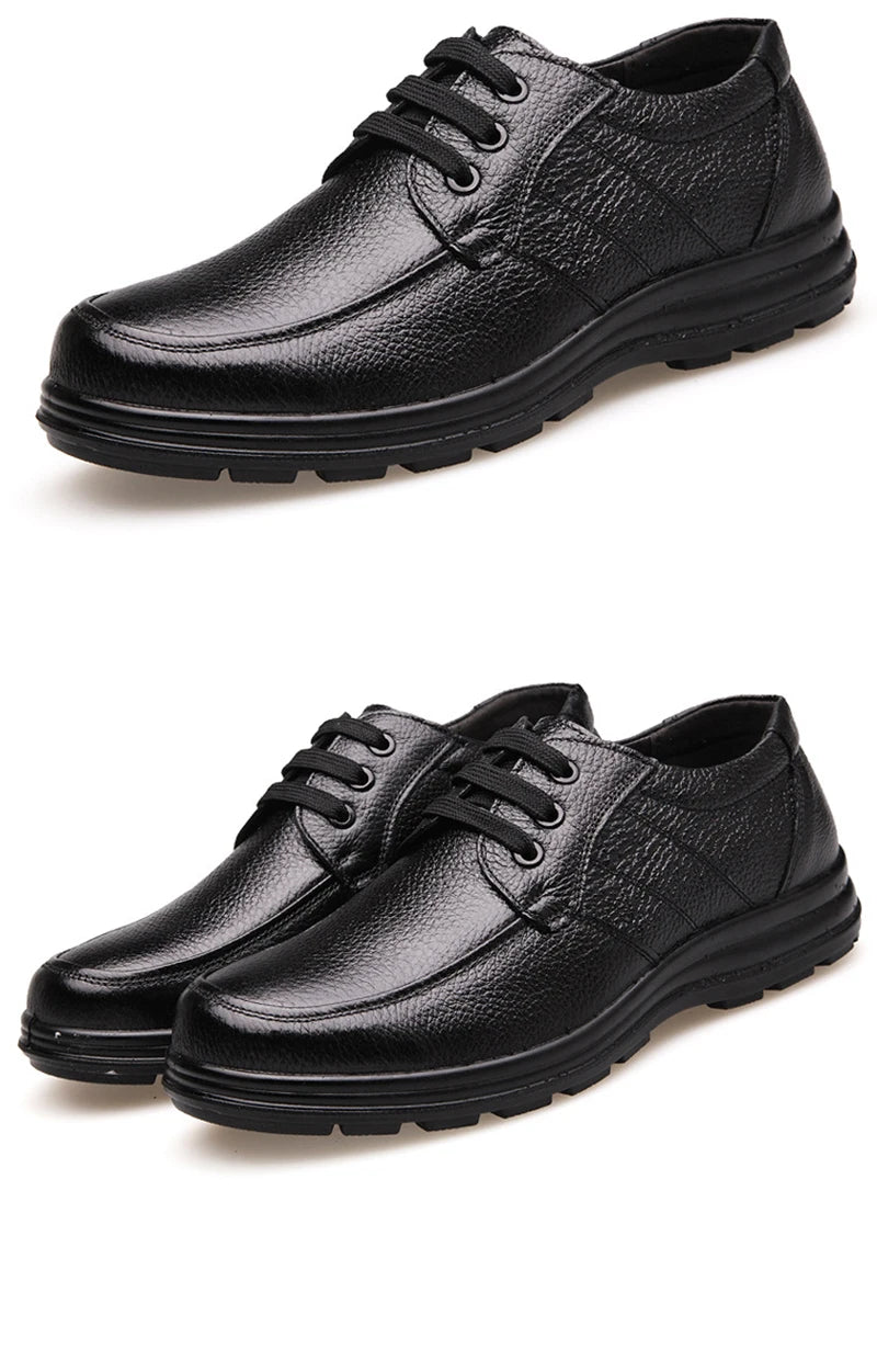 Zapatos de cuero genuino, zapatos planos informales para hombre, calzado masculino de marca de negocios de cuero de vaca, calzado suave y cómodo negro